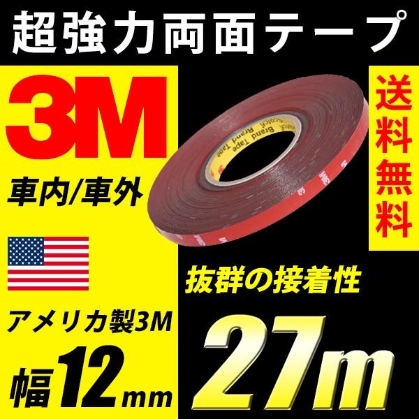 3m 超強力 両面テープ 27m巻き 幅12mm 厚さ0 8mm 粘着 接着 車外 車内 米国3m製 送料無料 Reiz Trading 通販 Paypayモール